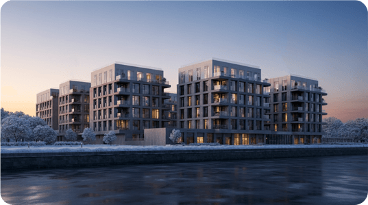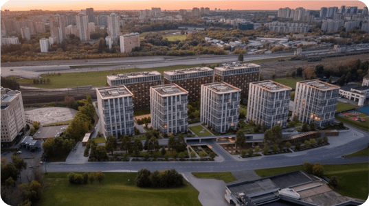 Жилой квартал у набережной Москвы-реки, 4 км от Кремля.